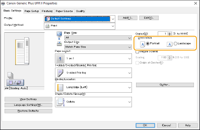 در صفحه [Basic Settings] درایور، [Orientation] را روی همان جهتی که در مرحله 1 تنظیم کردید قرار دهید.