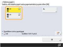 Jos näytetty paperikoko/-tyyppi eroaa lisätyn paperin koosta/tyypistä, valitse paperilähde, johon paperi on lisätty, ja paina <As.>.