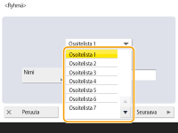 Valitse vastaanottaja ja valitse <Tiedot/Muokkaa>, jos haluat tarkistaa vastaanottajan asetukset. Palaa edelliseen näyttöön valitsemalla <OK>.