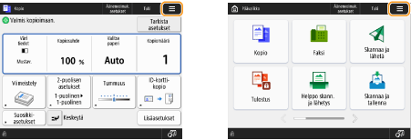 (Koti). <Päävalikko>-näytössä näytetään toimintopainikkeiden luettelo, josta voit valita eri toimintoja. <Päävalikko>-näytön kohteet