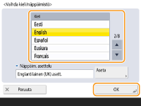 Valitse <Vaihda kieli/näppäimistö>, valitse kieli luettelosta ja valitse sitten <OK>.