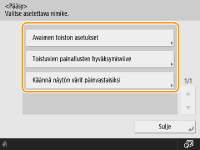 Jos laite on määritetty siten, että käyttäjien on kirjauduttava sisään käynnistyksen yhteydessä ( Kirjautumisnäytön avautumisen määrittäminen), <Oletusnäyttö aloitettaessa> näkyy <Omat asetukset> -kohdassa. Laitteen käynnistymisen jälkeen avautuva ikkuna voidaan asettaa kullekin käyttäjälle.