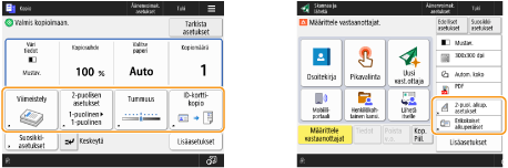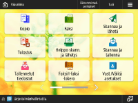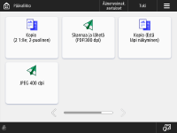 Voit vaihtaa asetuspainikkeet, jotka näkyvät perustoimintojen näytössä (kopio, faksi ja skannaus). Voit myös näyttää kullekin kirjautuneelle käyttäjälle mukautetut perustoimintojen näytöt.