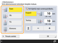 Voit tehdä sidontareunukset nidontaa tai rei'itystä varten. Voit asettaa sidontareunukset erikseen sivujen etu- ja taustapuolelle.
