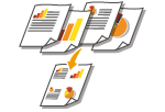 Kopioi kaksipuolisesti tai skannaa kaksipuoliset alkuperäiset yksipuolisiksi kopioiksi valitsemalla <2-puolisen asetukset>. Lisätietoja asetuksesta on kohdan
