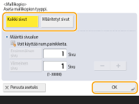 Jos haluat kopioida määritetyt sivut, valitse <Määritetyt sivut>. Lisää sivut valitsemalla <Alkusivu> tai <Loppusivu>.