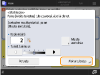 Tulosta määrittämäsi kopiomäärä valitsemalla <Aloita tulostus>. Jos valitsit vaiheessa 5 <Kaikki sivut>, tulostetaan yksi kopio vähemmän kuin määritetty sivumäärä. Jos valitsit vaiheessa 5 <Määritetyt sivut>, tulostetaan kaikki kopiot.