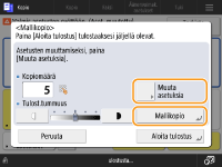 Muuta asetukset valitsemalla <Muuta asetuksia>. <Mallikopio> näkyy, kun asetukset on muutettu. Kopioi malli uudelleen.