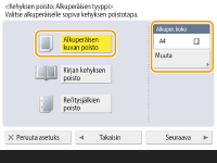Jos <Alkuper. koko> -kohdassa näkyvä koko ei ole sama kuin määrittämäsi alkuperäisen koko, valitse koko painamalla kohtaa <Muuta>.