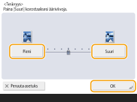 Aseta terävyydeksi <Suuri>, kun kopioit alkuperäisiä, jotka sisältävät tekstiä tai ohuita viivoja. Aseta terävyydeksi <Pieni>, kun kopioit alkuperäisiä, jotka sisältävät painettuja valokuvia tai muita harmaasävyjä.
