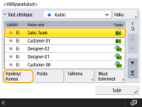 Jos <Hae osoitekirja> -arvoksi on asetettu <Kyllä>, osoitekirjasta voidaan valita myös välitysvastaanottajia.