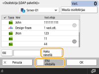 Kohtia <Tallenna uusi vastaanottaja>, <Tiedot/Muokkaa> ja <Poista> kohdassa <Tall./Muokkaa> näytössä Osoitekirja (Paikallinen) voidaan käyttää uusien vastaanottajien tallentamiseen, tietojen tarkistamiseen ja vastaanottajien muokkaamiseen tai poistamiseen.