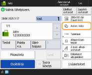 <Lähettäjän nimi>, voit valita nimen tallennettujen lähettäjien nimiluettelosta ja lisätä sen lähettäjän tietoihin. <Tallenna lähettäjän nimi>Jos kirjaudut käyttämällä käyttäjän todennusta, kirjautumisnimi näkyy kohdassa <100> kohdassa Lähettäjän nimi (TTI).