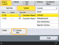 (Asetukset Rekisteröi) <Hallinta-asetukset> <Laitehallinta> <Rajoita pääsyä toisen käyttäjän töihin> -asetuksena on <Kyllä>, muut kuin kirjautuneen käyttäjän työt näkyvät muodossa "***" eikä niitä voi käyttää. Jos kirjaudut sisään pääkäyttäjän oikeuksin, kaikkien käyttäjien työt näytetään. |