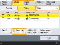Valitse luettelossa <Lähetä> tai <Vastaanotto> ja valitse sitten <Tiedonsiir. hallintarap>.