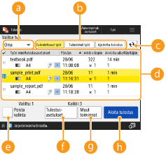 <Tulostettavat työt>/<Tulostetut työt>/<Ajoitettu tulostus>