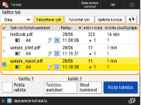 Siinä tapauksessa laitteella on tulostettava säilytetyt tiedot. Kun tulostat asiakirjat, voit tarkistaa niiden sisällön ja muuttaa tulostusasetuksia.