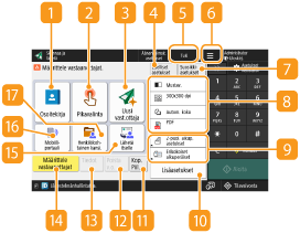 Tällä alueella näkyy väritilan ja skannauskoon kaltaisten asetusten tila. Vahvista asetukset, jotta alkuperäinen skannataan oikein. Vaihtaaksesi asetuksia, paina haluamaasi painiketta.