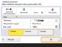 Voit hakea aikaisemmin määritetyt vastaanottajat. Samalla haetaan heidän skannausasetuksensa kuten tummuus.
