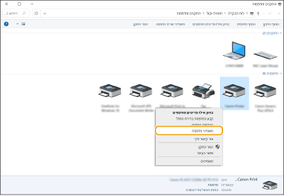 [הצג התקנים ומדפסות].