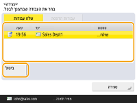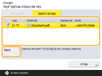 אם תלחץ על  (עצור) בלוח הבקרה במהלך עיבוד משימת שליחה/הדפסה ומוצג מסך המוביל אל <שלח עבודות>/<עבודות הדפסה>, משימת השליחה/ההדפסה המתבצעת תושהה והאפשרות <שלח עבודות>/<עבודות הדפסה> תוצג.