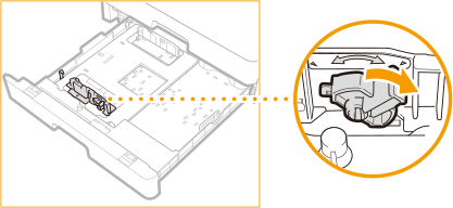 תוך לחיצת החלק העליון של המכוון הימני, החלק אותו כדי ליישר את מחוון הגודל עבור הנייר הנטען.