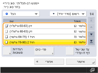 <אישור>. רישום גודל וסוג נייר נפוצים עבור המגש הרב-תכליתי