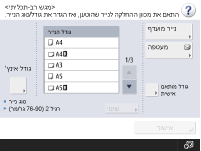 אם מוצג מסך שאינו המסך לציון גודל וסוג הנייראם מוצגת הודעה המבקשת ממך לכוונן את מכוון הנייר, כוון שוב את רוחב מכוון הנייר ולחץ על <אישור>.
