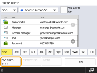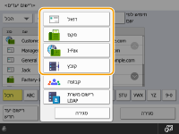 אם שרת ה-LDAP כבר נרשם במכשיר (רישום של שרת LDAP), באפשרותך לחפש יעדים ולרשום אותם בפנקס הכתובות. לחץ על <ספר כתובות/העברה>