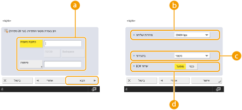 ), אחת בכל פעם.![]() /![]() לחץ בעת הזזת הסמן בשדה מספר הפקס (