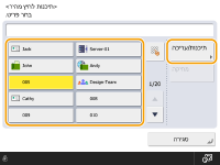 אם שרת ה-LDAP כבר נרשם במכשיר (רישום של שרת LDAP), באפשרותך לחפש יעדים ולרשום אותם בלחצני one-touch. לחץ על <ספר כתובות/העברה>‏  <תיכנות לחיץ מהיר>‏  בחר את לחצן one-touch שברצונך לרשום  לחץ על <תיכנות/עריכה>‏  <שרת LDAP> וחפש יעדים באמצעות <חיפוש לפי תנאים>. לאחר אישור ההגדרות של היעד, לחץ על <שם לחיץ מהיר>‏  זן את שם ה-one-touch שיוצג  לחץ על <אישור>.