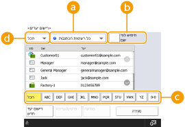 קבע את התצורה של רשימות כתובות של קבוצות משתמשים מממשק המשתמש המרוחק. (רישום יעדים באמצעות ממשק המשתמש המרוחק)