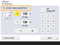 באפשרותך להשתמש במקשי הספרות.> מוצגת, ניתן להזין ערכים מספריים באמצעות מקשי הספרות הנמצאים מימין למסך המגע.דוגמה: מסך ההגדרה של <יחס XY>