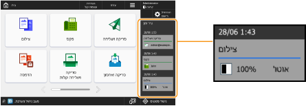 אם האפשרות <ניהול מספרי גישה לפנקסי כתובות> מוגדרת כ-<מופעל>, יומן משימות השליחה ("פקס" ו-"סריקה ושליחה") עבור משתמשים לא מאומתים ומשתמשים אורחים לא יוצג בציר הזמן.