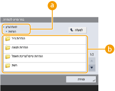 ניתן לשנות את ההגדרות הנוגעות לתצוגת המסך, כגון איזה מסך יופיע מיד לאחר הפעלת המכשיר, ואם תופיע ההודעה על הנייר והטונר הנותרים. <הגדרות תצוגה>