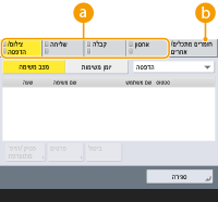 סטטוס ויומנים של צילום/הדפסה/שידור/מסמכים שנשמרו