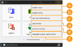 <הגבלת תצוגת פונקציות>: בחרו את הפונקציות או יישומי MEAP להסתרה במסך <בית>.