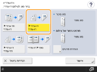 בעת ביצוע צילום דו-צדדי, הפונקציות של חלק מההגדרות כגון גודל וסוג נייר מוגבלות. למידע נוסף, יש לעיין בסעיף מפרט חומרה.