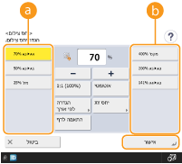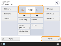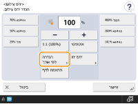 ניתן להגדיל או להקטין את הגודל על ידי ציון יחס הצילום (%). ניתן לציין יחסי אופקי ואנכי בנפרד.