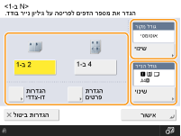 בחר כמה עמודים יסודרו על גבי גיליון נייר אחד. ניתן לשנות גם את סדר הסידור.