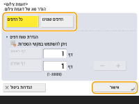 אם תבחר <כל הדפים>, המונה של המכשיר יספור את קבוצת הדוגמה כעותק.