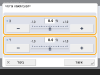 הגדר את ההגדלה של <X> לצורך כוונון הרוחב האופקי, ואת ההגדלה של <Y> לכוונון הרוחב האנכי.