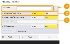 לחץ על <שם משתמש> או <סיסמה>, והזן אץ המידע. אם הזנת שם עבור <שם משתמש>, השבת את <שימוש בשם כניסה כשם משתמש>.