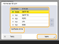 לחץ על <ציון לפי שם שירות> כדי להתשמש בשמות השירות בעת ציון היציאות שהבהן יוחל ה-IPSec. בחר את השירות ברשימה, לחץ על <שירות מופעל/כבוי> כדי להגדירו כ- <מופעל>, ולחץ על <אישור>.