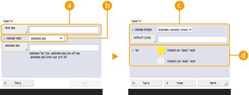 בחר כיצד לטפל במסמכים התואמים את התנאים. כאשר <השהה כמשימה משותפת> נבחר, ניתן להגדיר <מזהה להחלפה> לשם ציון את פלט שם המשתמש ליומן בזמן ההדפסה. בחר <ביטול> לביטול המסמך.