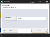 הזינו את השם של תיקיית היעד החדשה והקישו על <אישור>.