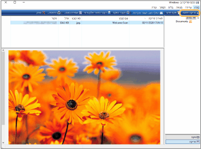 כשהסריקה הושלמה, המסמך שנסרק מוצג ברשימת הקבצים במסך [פקס וסריקה ב-Windows] ונשמר בתיקייה [מסמכים שנסרקו] תחת [מסמכים].