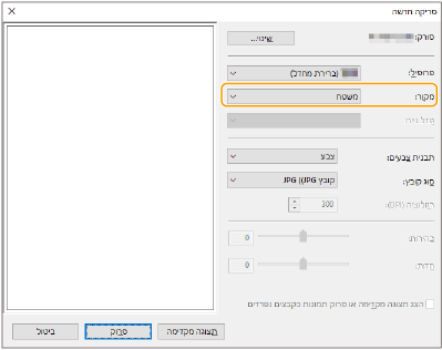 כדי לבדוק את התמונה הסרוקה עם שיקוף ההגדרות שצוינו, לחץ על [תצוגה מקדימה].