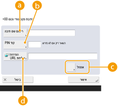<הגדרות שליחת URL>הגדרה זו מאפשרת לשלוח את כתובת ה-URL של תיבה המכילה מסמכים שמורים באמצעות הדוא"ל או לבדוק את תוכנה ממסך ממשק המשתמש המרוחק.