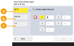 <כל יום> (1 עד 5), <ציון ימים> (<א'> עד <שבת>, 1 עד 5), <כבוי>
